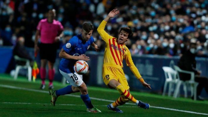 Durante los primeros 45 minutos en el Municipal de Linarejos, Hugo Díaz adelantó a los locales con un gran cabezazo en el que se durmió la zaga azulgrana. Por su lado, el Barcelona, pese al dominio de la posesión de la pelota no ha estado certero en sus jugadas sobre el área rival; si bien Ilias, Riqui Puig y Jordi Alba tuvieron ocasiones Razak no tuvo que intervenir.