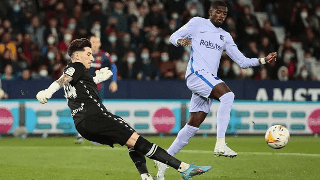 En la segunda mitad Levante se puso en ventaje luego de un penal. Luego del doble cambio en el Barça; salieron Nico y De Jong para que entren Gavi y Pedri. Aubameyang marcó el empate a los 58 minutos del complemento, tras un centro de Dembelé que se ubica segundo en la tabla de asistidores con diez pases de gol. A los 62 Gavi tocó atras para Pedrí que marcó el segundo del Barcelona para dar vuelta el partido. A los 81 minutos llegó el tercer penal para el Levante y Ter Stegen no pudo hacer nada ante el remate de Alejandro Cantero que marcó el empate para el Levante. A los 92 minutos De Jong puso el tres a dos definitivo.
