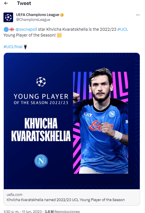 De tremenda e histórica campaña con Napoli de Italia, Khvicha Kvaratskhelia elevó su valor de mercado a $80 millones de euros Y si bien Real Madrid también pidió condiciones por él hasta el momento no hay nada firme sobre la mesa acerca de una posible transferencia en el mercado de pases de verano.