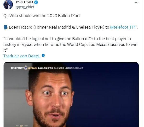 Real Madrid tuvo entre sus filas a un jugador que, finalmente no aportó mucho y ahora que no está en el equipo, ya no le importa si lo critican, por lo que ha definido como ganador y merecedor del Balón de Oro a Lionel Messi. Se trata de Eden Hazard, quien tuvo un paso pobre por la Casa Blanca y luego de ello anunció su retiro de las canchas.