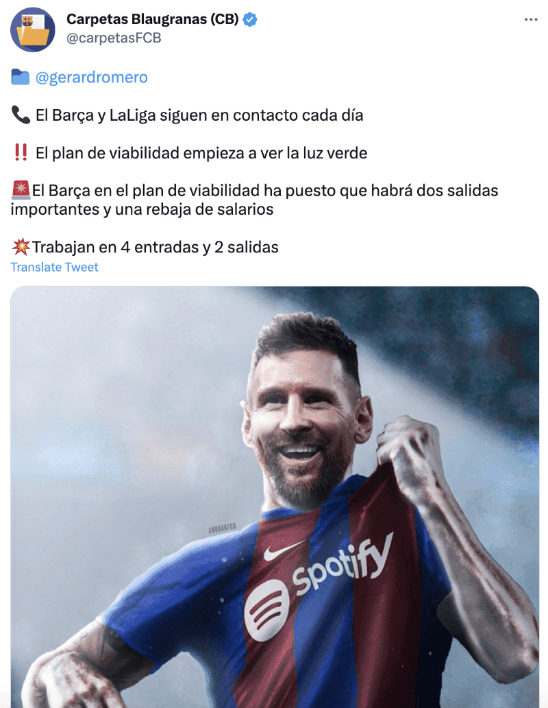 Gerard Romero acotó que se plantea el FC Barcelona una rebaja en los salarios del plantel para que pueda volver Lionel Messi. Al momento los jugadores están pensando en el regreso de su capitán y referente, mientras que Joan Laporta dio el informe respectivo con el objetivo de presentar que pueden volver a tener al 10.