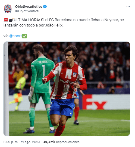 Si Neymar finalmente no llega como refuerzo, la información de diario Sport es que FC Barcelona aceleraría los pasos para quedarse con Joao Félix. Al delantero portugués le encantaría jugar en el Culé, algo que ya ha manifestado con insistencia y no tendrá lugar en Atlético de Madrid de la próxima temporada.