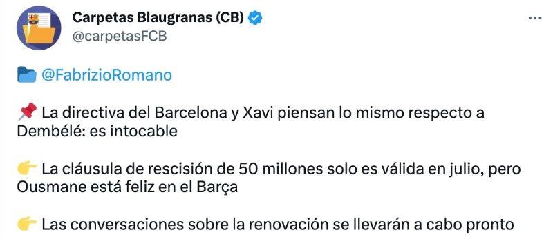El mundo del FC Barcelona se encuentra paralizado por la vuelta de Lionel Messi. A tan solo detalles para confirmar el regreso, los fanáticos, la dirigencia y hasta los jugadores se emocionan con la vuelta de uno de los mejores jugadores del mundo. Por esta razón, según informa Fabrizio Romano, Ousmane Dembélé está más que contento con quedarse en el club.