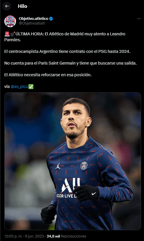 Luego de jugar poco y nada en Juventus de Italia, Leandro Paredes debe regresar a PSG donde no se será tenido en cuenta y tras cumplirse el 30 de junio de 2023 quedará con el pase en su poder. El caso de fichar como agente libre no es un dato menor para Atlético de Madrid, ya que solo debería ocuparse de los gastos de su contrato.