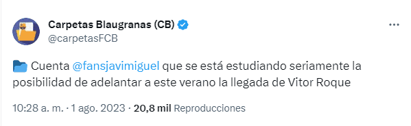 De acuerdo a la información de Javier Miguel, periodista de diario AS, en FC Barcelona aceleran para poder traer a Vitor Roque en este mismo mercado de pases de verano y no esperar a que llegue el invierno. La idea inicial cambió justamente por la precipitada salida de Ousmane Dembélé y ahora el apuro empezó a correr en FC Barcelona.