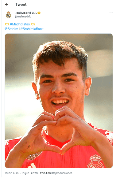 Fue la propia cuenta oficial de Real Madrid la que le dio la bienvenida a Brahim Díaz. El jugador, de apenas 23 años, retorna al club para tener su chance luego de salir en dos oportunidades a préstamo para jugar en AC Milán de Italia. Sin lugar en la Casa Blanca, el mediocentro ofensivo encontró el rodaje necesario en el Rossonero.