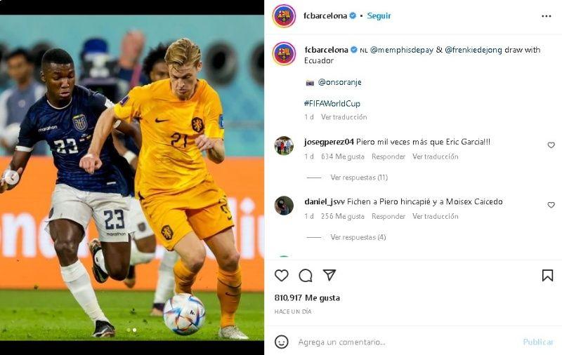 Ahora bien, recientemente Ecuador logró un empate contra Países Bajos y la cuenta del Barcelona aprovechó la ocasión para ¿mandarle un aviso encriptado al Real Madrid? La cuenta oficial del Barça publicó una foto de Caicedo junto a Frenkie De Jong, jugador culé, con motivo del partido entre ambos, y en la Casa Blanca saltaron las alarmas.