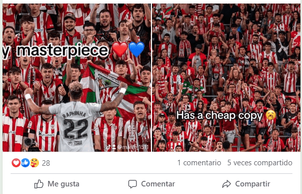 De la misma manera que celebró su tanto en la jornada de ayer Jude Bellingham, Raphinha lo hizo con la camiseta de FC Barcelona. El festejo es idéntico: parado frente al público en San Mamés, con los brazos bien abiertos mirando a la afición. Los hinchas blaugranas no tardaron en recordarlo como una copia barata.