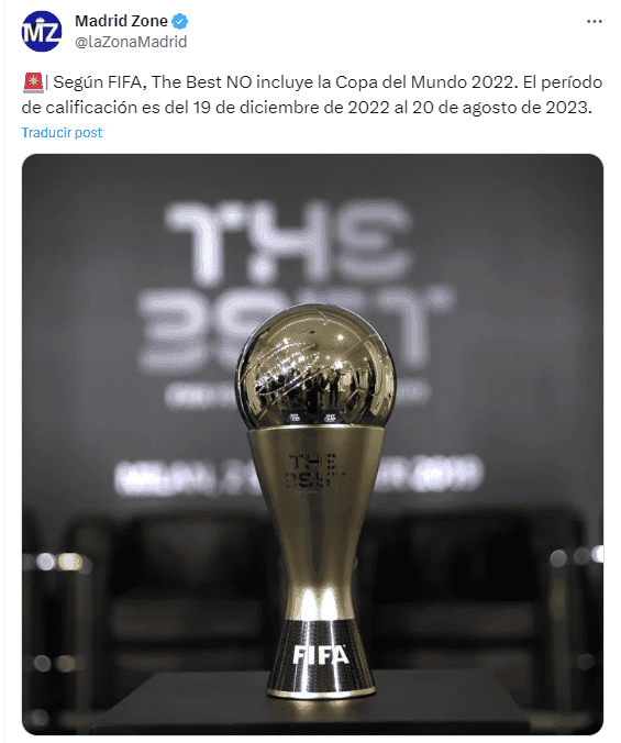 En esta oportunidad el marco de competencias y medición de la temporada en los opcionados a quedarse con el Premio The Best comprende la fecha entre el 19 de diciembre y el 20 de agosto, un día después de la obtención del título de la Copa del Mundo con la Selección Argentina, y en medio de su ya conocida situación con el PSG, en donde quedó eliminado en los octavos de final de la Champions League anotando 10 goles y 7 asistencias con el club francés.