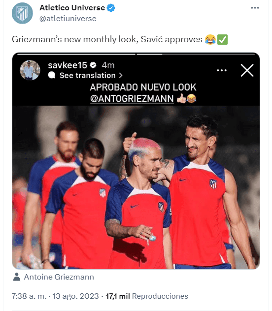 Tal como mostró la aprobación en la cuenta oficial de Stefan Savic, Antoine Griezmann decidió teñirse la cabeza con los colores azul, blanco y rojo que caracterizan por supuesto al equipo al que ya le ha demostrado en varias oportunidades un amor incondicional. Ahora, el delantero se prepara para tener una temporada igual o mejor de la que tuvo en la temporada anterior.