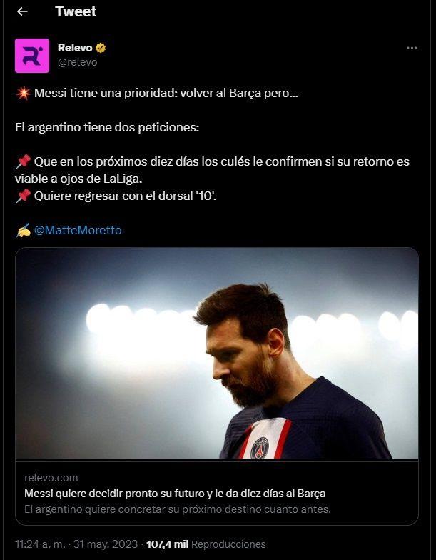 De acuerdo a la información de Mateo Moretto, Lionel Messi quiere regresar con el dorsal 10 en la espalda que hoy es propiedad de Ansu Fati. Ese requisito y tener una rápida respuesta sobre su futuro son los dos ítems que quiere el argentino para poder rechazar los millones que le ofrecen desde Arabia Saudita.