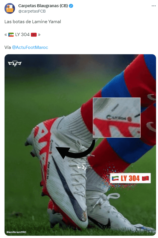 Lamile Yamal además de su talento dejó entrever cuál sería su posible elección, o eso parece indicar, ya que las cámaras de LaLiga enfocaron un particular hecho que le señala su decisión; este lo podemos ver en sus calcetines de partido empleados vs Villarreal, donde se ven las iniciales de su nombre, el 304, que representa el código postal de la población donde creció, Rocafonda y las banderas de Guinea Ecuatorial y Marruecos, los países de origen de sus respectivos padres. ¿Todo dicho?