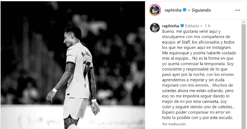 Ya con la cabeza fría después de la noche polémica que se vivió en el empate 0-0 entre Barcelona y Getafe, el brasileño mandó un sentido mensaje a los fanáticos blaugranas disculpándose: "Quiero disculparme con mis compañeros, personal, aficionados y seguidores. Me equivoqué y el equipo perdió. No era el comienzo que quería".