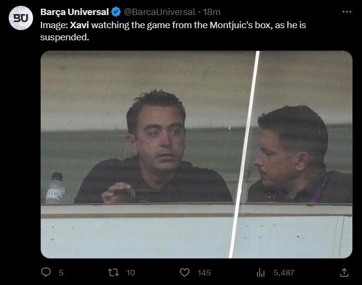 Así es, debe estar más nervioso allí arriba que desde el propio campo de juego. Se lo veía constantemente mirando el móvil y enviando mensajes (suponemos que a su cuerpo técnico) para indicarle algunas cosas que él veía desde la altura. Parece que no sirven de mucho porque su escuadra aún sigue 0-0.