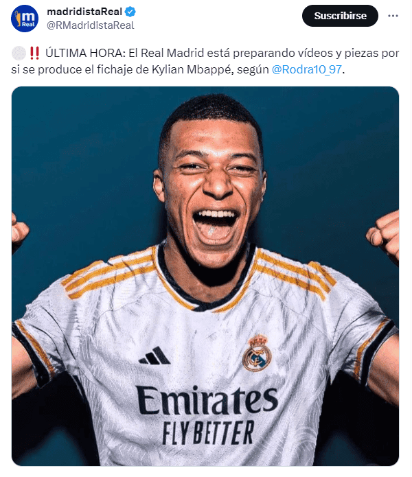 De acuerdo al periodista Javier Rodriguez Pascual, la oficina de comunicaciones del Real Madrid está trabajando a toda máquina para ultimar los detalles del fichaje de Kylian Mbappé teniendo todo listo, desde su video presentación pasando por el dorsal, la imagen insignia con la camiseta madridista para esta temporada que está por iniciar y un sin fin de elementos más desde la parte audiovisual, todos bajo la orden de su presidente Florentino Pérez quien le recibirá en la casa blanca.