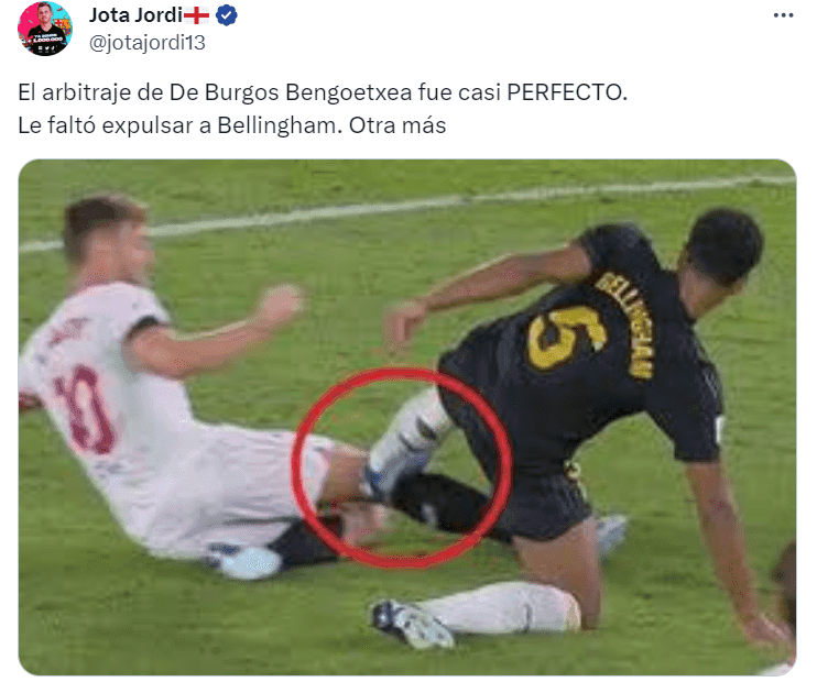 La polémica se ha trasladado a la TV, y fue el programa español El Chiringuito de Jugones, quien atizó la situación aun con varias horas de sucedido el encuentro. Allí, uno de sus principales panelistas, el periodista Jota Jordi, enfatizó en lo laxo que fue Begoetxea con Jude Bellingham, tras la fuerte acción de juego para con Iván Rakitić, en una de las situaciones más complejas de la jornada, esto en medio de un balón dividido al que ambos fueron a competir.