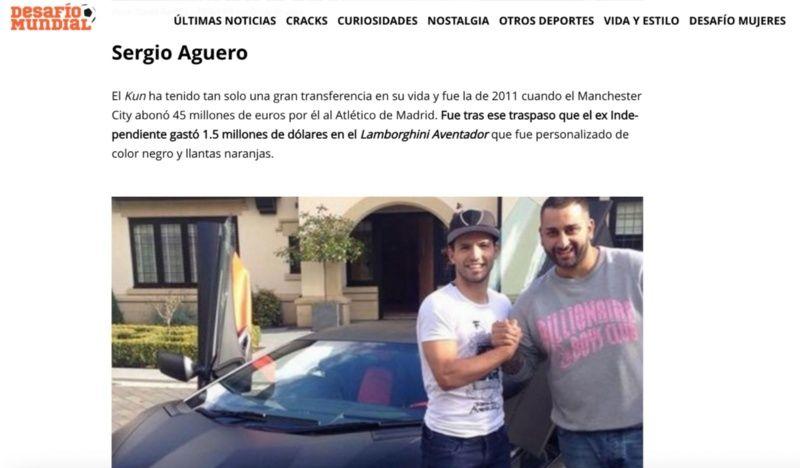 De acuerdo a la información de Desafío Mundial, Sergio Agüero se dio un gran lujo en vida una vez consumada su llegada en 2011 a Manchester United. Con ese dinero fuerte que recibió por la transferencia al llegar a Inglaterra, decidió gastar un millón y medio de euros en un Lamborghini Aventador.