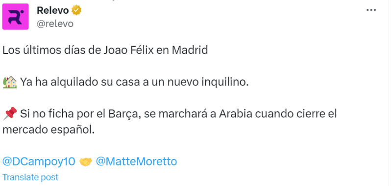 Para salir del Atlético, Joao Félix, de acuerdo a la información que comunicó el medio ‘Relevo’, ya alquiló su casa que tiene en Madrid. También apareció la opción de marcharse a Arabia en el caso de que no sea fichado por el equipo catalán, ya que el mercado árabe cierra unas semanas más tarde que el europeo.