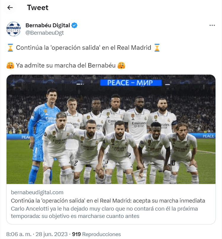 Real Madrid ha tenido un importante éxodo de salidas en el actual mercado de pases, aunque la gran mayoría tiene que ver con jugadores que no tenían mucho rodaje en la idea de Carlo Ancelotti. El único que generará un agujero en su equipo es la partida de Karim Benzema, el resto, era suplente en su esquema.