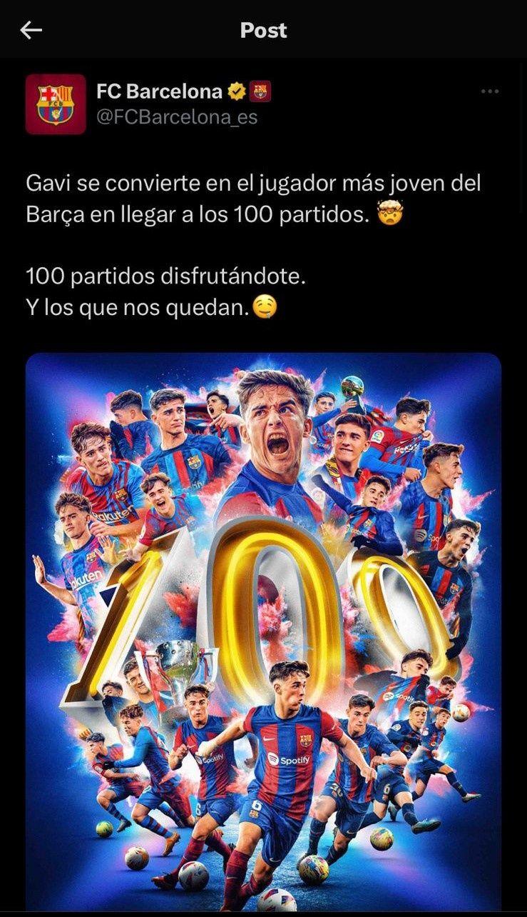 Quien consiguió un hito histórico con la camiseta blaugrana fue Gavi. El medio de 19 años, hoy mismo, ha llegado a los 100 partidos vistiendo de culé. Con esto, se convirtió en el jugador más joven en la historia del club en llegar a esta cifra. Ni el mismísimo Lionel Andres Messi pudo conseguir esto a tan temprana edad.