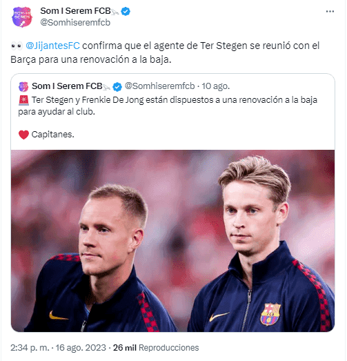 De acuerdo a la información de Jijantes, Marc André Ter Stegen le propuso los directivos de FC Barcelona la reducción de su contrato. A esta altura, cualquier tipo de ayuda en lo económico es fundamental para un club que ha sido fuertemente monitoreado por el Fair Play Financiero y que necesita urgente contar con dinero fresco.
