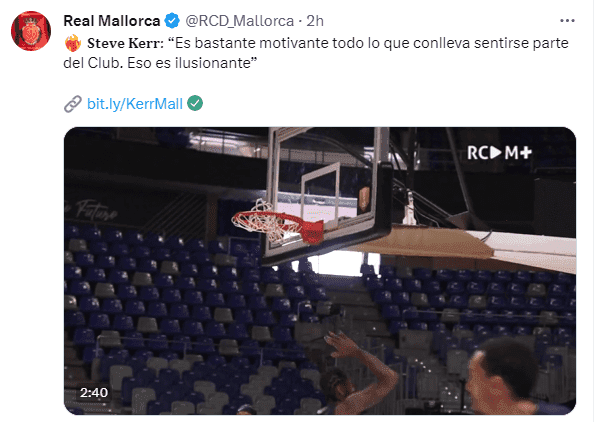 Steve Kerr, actual entrenador de los Golden State Warriors de la NBA se suma al directorio del Mallorca La operación se ha hecho oficial y a su llegada el norteamericano ha dicho lo siguiente: ‘Soy amigo de Andy Kohlberg y estuvimos juntos este verano. Me dijo que ha habido un cambio en la propiedad y me ofreció la opción de ser parte del nuevo grupo inversor. Estoy muy motivado , estuve en Mallorca el pasado verano viendo un partido, apoyando al equipo y convirtiéndome en su fan. Es una oportunidad muy emocionante’.