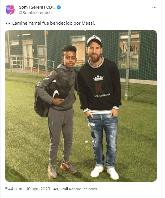 Si bien Lamine Yamal tiene apenas 17 años recién cumplidos, la foto viral de él es aún cuando todavía era más chico. Al delantero se lo ve posando con Lionel Messi en tiempos en los que el delantero argentino todavía era jugador de FC Barcelona e ídolo del club. El joven canterano lo tiene como su gran espejo a seguir.