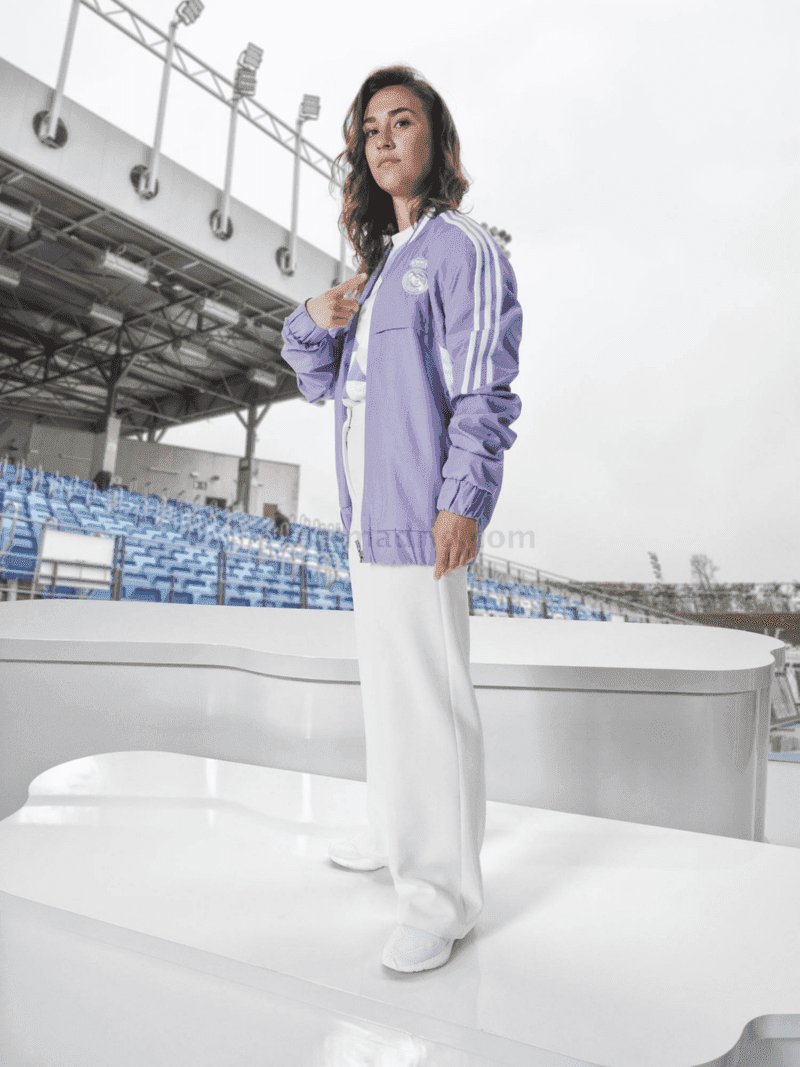La apuesta de Adidas y el Real Madrid para la próxima temporada será volver al blanco y al morado, los colores tradicionales de la historia de la entidad. La última vez fue en la temporada 2016/2017 en la que el equipo conquistó La Liga y La Duodécima con Zinedine Zidane en el banquillo. Además, destacan los escudos del Real Madrid que aparecerían por toda ella de forma suave.