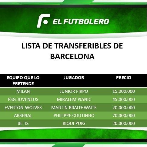 El futuro inmediato de Barcelona se encuentra condicionado exclusivamente por los futbolistas que pueda vender. Varios son los nombres que Ronald Koeman no tendría en cuenta y que el club debería ubicar en este mercado de pases, para poder ir en búsqueda de los refuerzos que el entrenador pretende.