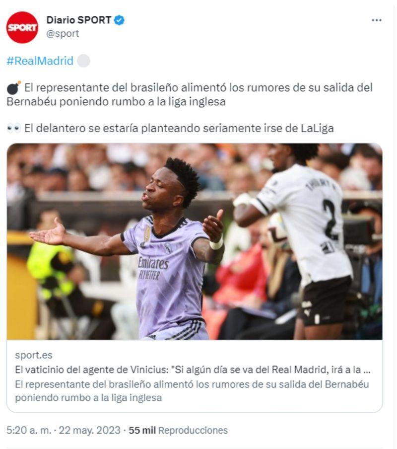 Vinicius ha sido noticia a nivel mundial y no por los goles que suele hacer adentro de la cancha. El atacante brasileño sufrió hechos de racismo en su contra por parte de los hinchas de valencia en el duelo por La Liga realizado en Mestalla y podría tomar una fuerte decisión con respecto a su futuro, tras los rumores de Sport.