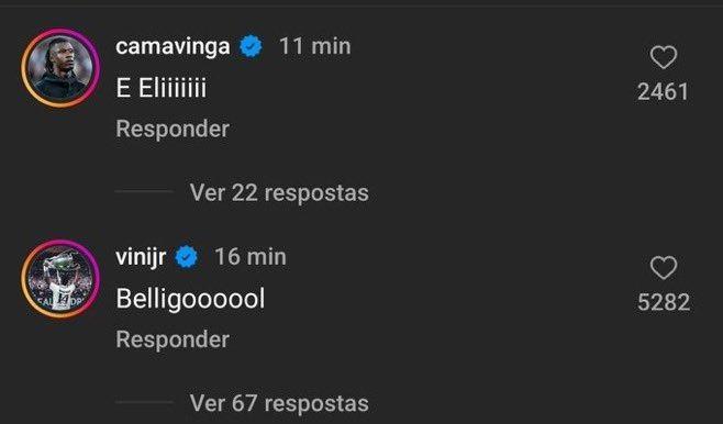 En las redes sociales, Vinicius Junior le comentó un posteo a Jude Bellingham, donde le escribió: “Belligoooool”, siendo el nuevo apodo que le puso al atacante inglés, quien ahora está pasando un gran momento en el Real Madrid y pocos esperaban que en su primera temporada recién se esté adaptando, pero ha roto todos los esquemas.