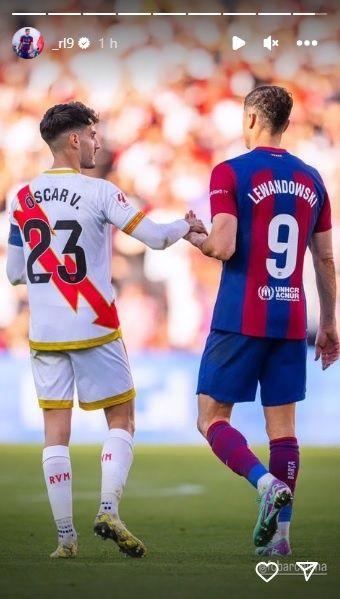 Por su parte, Robert Lewandowski, cuando salía del campo de juego ante Rayo Vallecano se le notó molesto pero en sus redes sociales subió una foto saludándose con Óscar Valentín, demostrando que todo quedó en el terreno de juego. El polaco no está dulce con el gol y pasa por una mala racha, que espera que se revierta pronto.