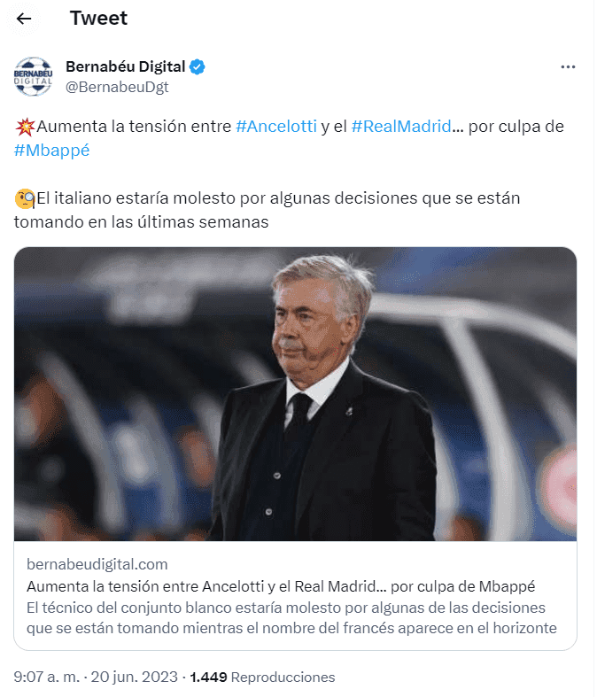 Carlo Ancelotti pidió con extrema prioridad poder contratar a un jugador de jerarquía en lugar de Karim Benzema. La danza de nombres puso como prioridad a Harry Kane y a Kylian Mbappé, sin embargo, la comisión directiva decidió apostar por Joselú, un fichaje que el entrenador considera de menor jerarquía.