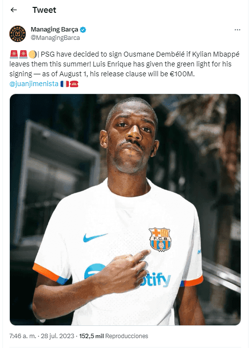 Si finalmente Kylian Mbappé se marcha de PSG como tanto se rumorea, la alternativa que tienen en el conjunto francés es poder fichar a Ousmane Dembélé como su reemplazo. Por supuesto que por el tema de los números no será nada fácil pero la propuesta está sobre la mesa si se llegaba a la transferencia del francés al merengue.