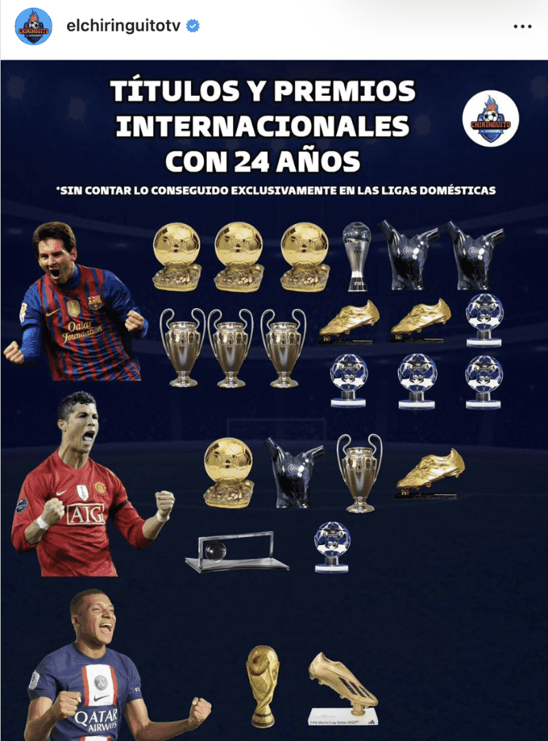Y es que actualmente Kylian Mbappé tiene 24 años y ha conseguido la Copa del Mundo así como la Bota de Oro, sin embargo Lionel Messi cuando tenía esa edad ya era considerado el mejor de todos y peleaba con Cristiano Ronaldo, pero sus trofeos ya lo habían certificado que no tenía una competencia y nadie estaba a la altura.