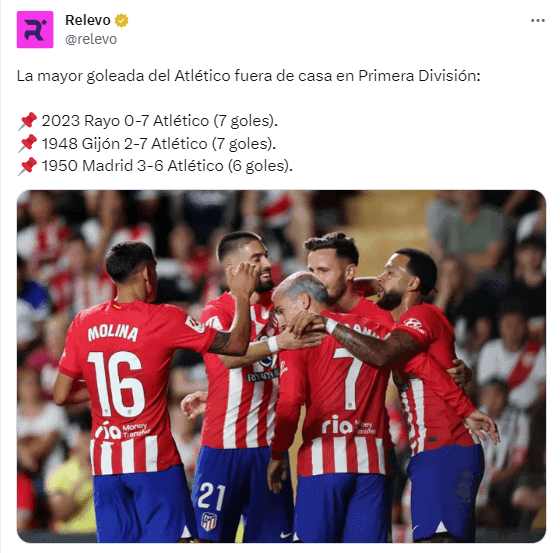 Así como este equipo viene igualando rachas de campañas ganadoras y que finalizaron en la consecución de la temporada, también debemos situar que este 7-0 ante el Rayo Vallecano se ubica como la mayor goleada del club fuera de su estadio, ogiualanando la impuesta ante el Gijón por marcador de 2-7 en 1948 y el 3-6 ante el Madrid en 1950.