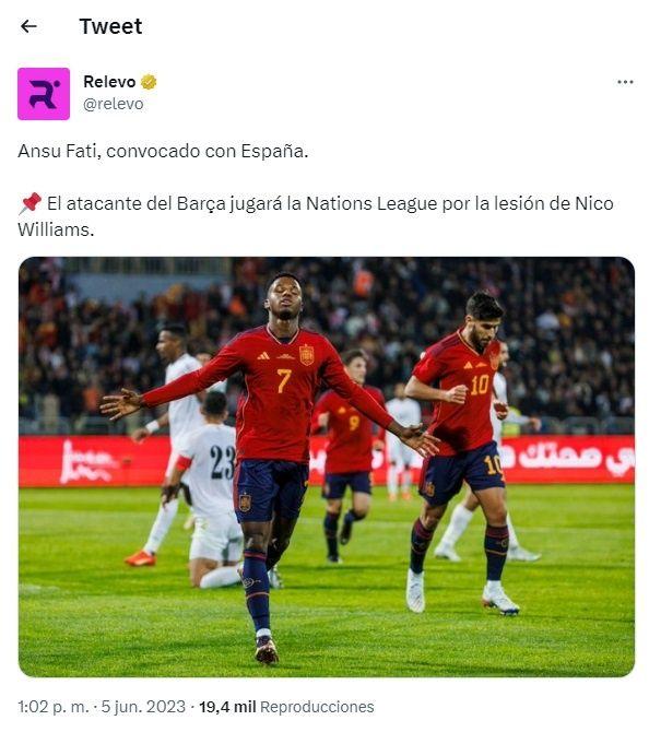 La última información en torneo al delantero tiene que ver con la convocatoria de Ansu Fati para ser parte de la Selección de España que se prepara para disputar una nueva fecha de la Nations League. La convocatoria del juvenil blaugrana se da por la lesión de Nicole Williams, futbolista de Athletic de Bilbao.