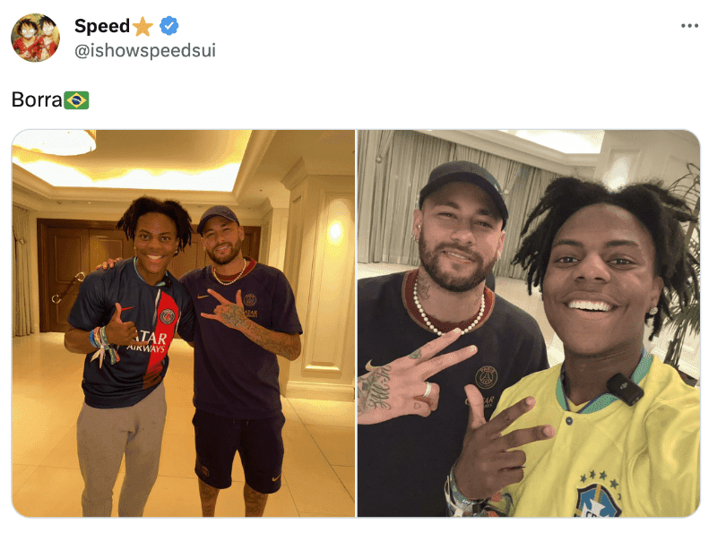 Se trata del Youtuber Speed, quien se topó con Neymar y pasaron un momento ameno, haciendo videos y le dedicó un par de saludos. Es así que Neymar pasó parte de la previa del partido entre PSG y Al-Nassr, mientras que sus compañeros siguen entrenándose y poniéndose a punto para lo que será el arranque de temporada.