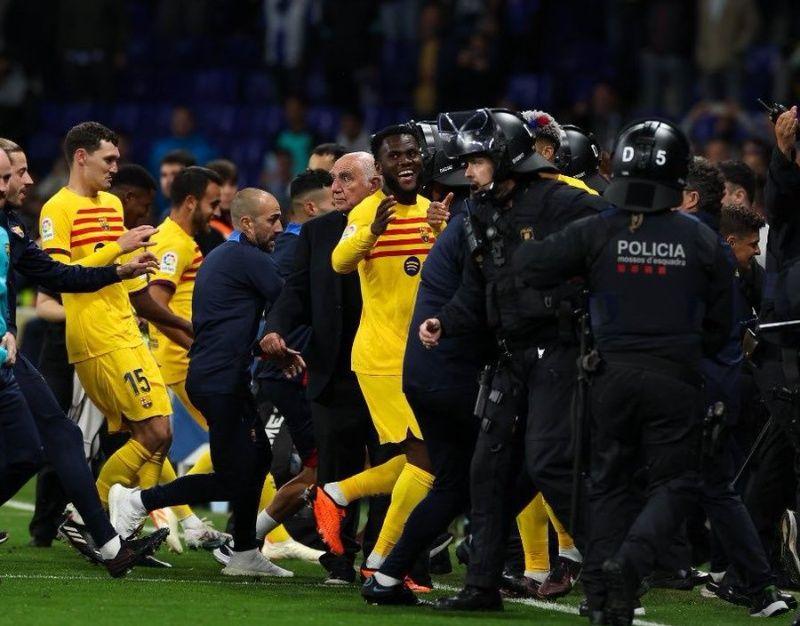 De repente, los jugadores y el staff del Barcelona comenzaron a correr hacia el túnel que los llevaba al vestuario porque veían que desde las gradas se acercaba una multitud de fanáticos del Espanyol en busca de violencia porque estaban celebrando el título. Comenzaron a correr para agredir a los jugadores.