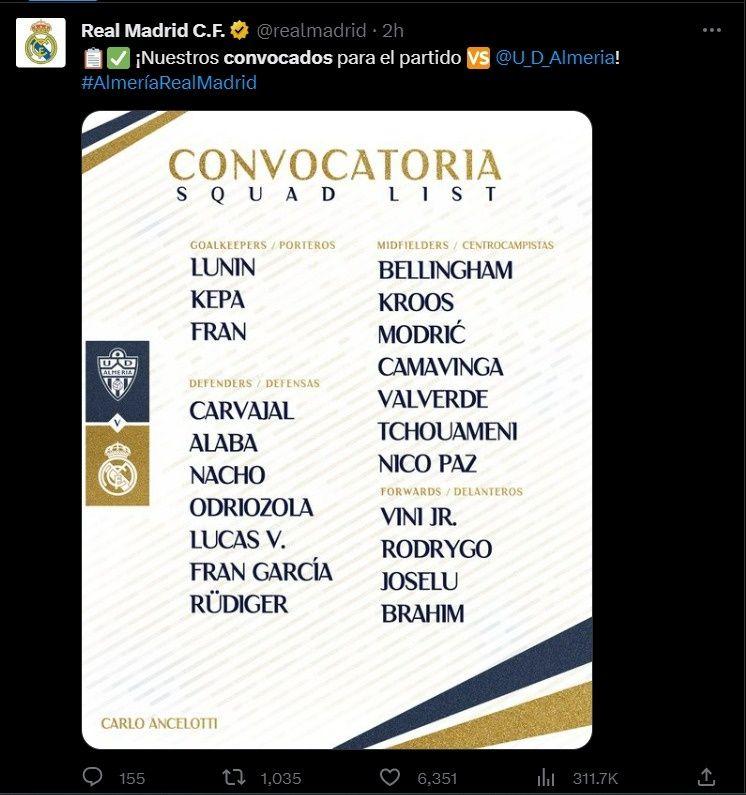 Es increíble que a pesar de haber sido elegido como el primer capitán del equipo, no es de la consideración de Carlo Ancelotti para cubrir el puesto del lesionado Eder Militao. Nacho Fernández es quien debería llevar la cinta en primer lugar y aún no pudo ponérselo. En su lugar, irá Antonio Rüdiger que llegó la temporada pasada.