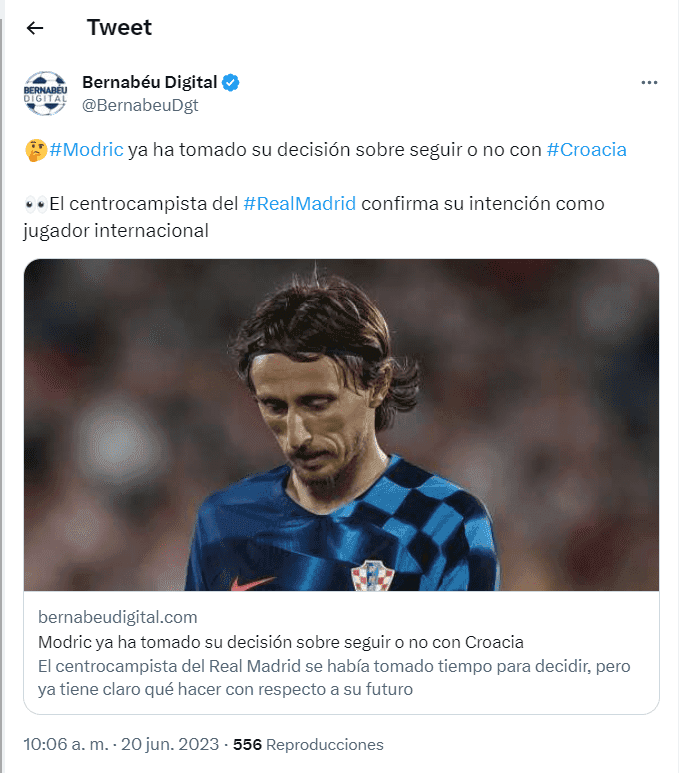 De acuerdo a la información que aporta el medio croata 24 Sata, Luka Modric se pronunció acerca de su futuro que no tiene que ver con Real Madrid ni con Arabia Saudita, sino con la decisión respecto a la Selección de Croacia tras perder la final de la Liga de las Naciones, donde es capitán y referente indiscutido.