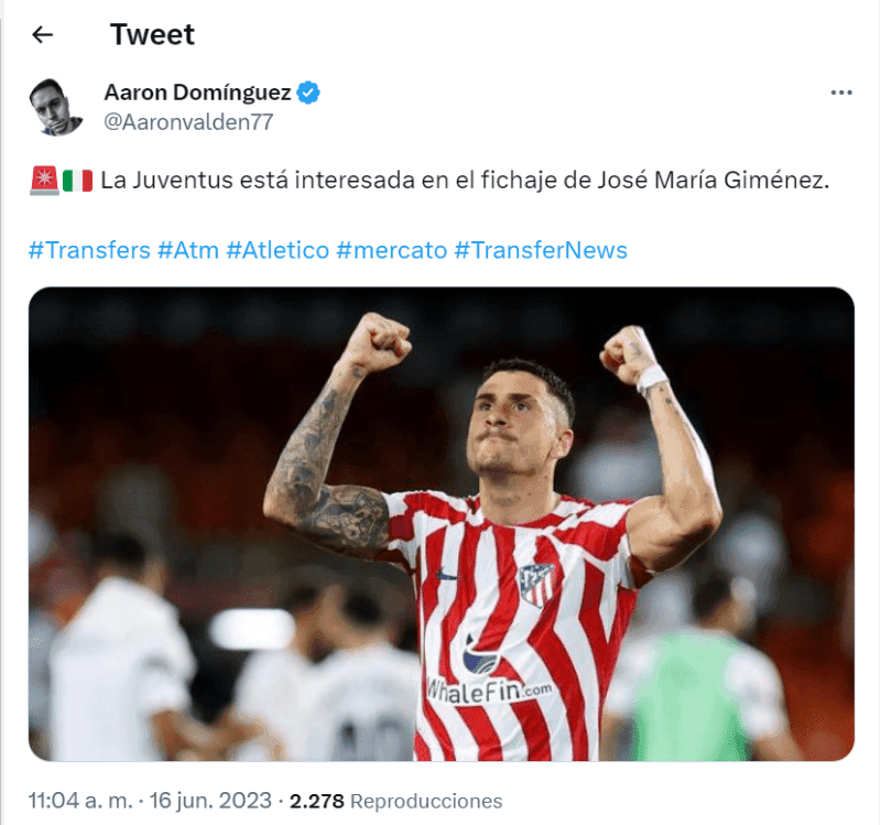 Sin embargo, Atlético de Madrid podría realizar una maniobra para hacerse de Dusan Vlahovic que generaría malestar en la afición colchonera. De acuerdo a la información del periodista Aaron Domínguez, Juventus quiere a José María Giménez para el próximo año y podría utilizarlo el Colchonero como moneda de cambio para quedarse con el serbio.