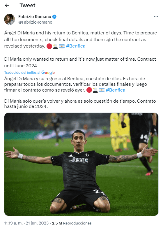De acuerdo a la información de Fabrizio Romano, Ángel Di María tiene todo acordado para regresar a Benfica de Portugal, club en el que inició su recorrido deportivo en Europa. Las partes ya estarían de acuerdo y es cuestión de tiempo que el anuncio se haga oficial. Así, el campeón del mundo con la Selección Argentina también ningunea el interés de FC Barcelona.
