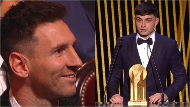 El Canario agradeció a su actual plantilla en el estrado. Y en particular, a su capitán al llegar al Barcelona, quien hizo su adaptación al mundo blaugrana más sencilla “quiero agradecer al Barsa, jugadores y entrenadores que hicieron mi estancia en el club más fácil, cómo Leo que está acá presente. Gracias por todo lo que me ayudaste", sostuvo Pedri con la mirada fija en Messi, ganador de siete Balones de Oro, quien no pudo evitar sentir satisfacción por el agradecimiento.