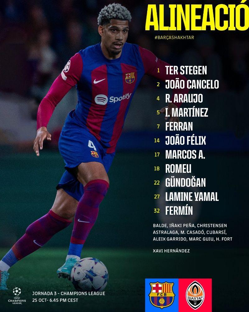 FC Barcelona lanzó la alineación oficial en sus cuentas sociales, que son con varios jugadores que no serían considerados titulares. Aparecen nombres como Marcos Alonso y no Alejandro Balde por la banda izquierda, además de Fermín López, quien es uno de los jugadores que Xavi Hernández siempre lo tiene como un plan b.