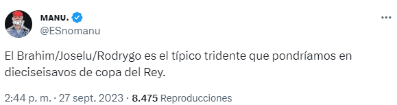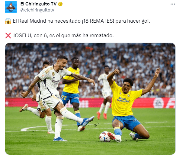 La discusión se ha dado en las redes sociales y principalmente en X (antes Twtitter), donde la afición se ha expresado muy en contra de Joselu, aunque algunos lo han reconocido como “el único jugador que está definiendo arriba. Rodrygo mucho dar pases a un metro y lo de tirar a puerta poquito. Que injusto me parece. Es más fácil criticar y dejar por los suelos al cuñado de Carvajal que criticar al brasileño con carisma, ¿eh?”. También ha recibido muchísimas críticas Florentino Pérez, a quien le atribuyen la responsabilidad de tener a Joselu como 9 y no haber reemplazado a Karim Benzema, quien ha decidido irse a Arabia Saudí.