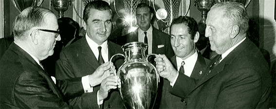 Bernabéu tenía un lema: debemos tener los mejores jugadores y ganar títulos. En su extensa etapa, 35 años, hasta su fallecimiento en 1978, el Real Madrid creó su leyenda. Ganó las primeras cinco Copas de Europa y en total se adjudico seis. A esos grandes títulos añadió 16 Ligas, seis Copas de España, una Copa Intercontinental, dos Copas Latinas y dos Pequeñas Copas del Mundo. En total, 33 títulos en fútbol.