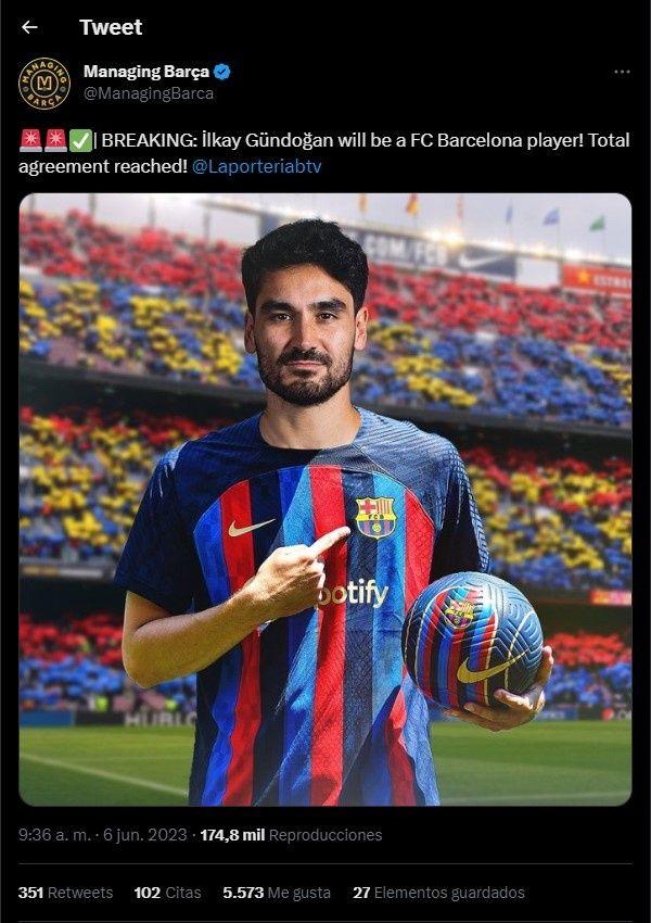 En medio de este revuelo se dio a conocer una noticia que los hinchas del FC Barcelona estaban esperando hace ya días. Y es que parece que finalmente İlkay Gündoğan será jugador del Barça tras su memorable paso por el Manchester City, y no solo eso, parecería ser que ya hay un acuerdo total entre club y el jugador.