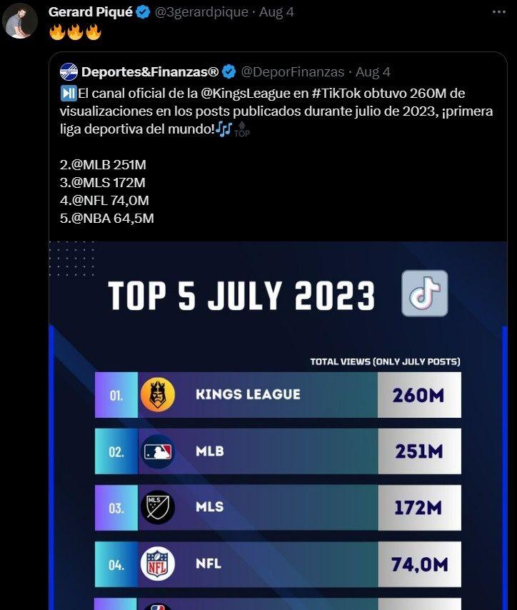 Al ver esos números en la cuenta de Twitter oficial del torneo, la leyenda blaugrana se quedó loco con lo que veía. En una comparación con otras competencias ya acentadas e internacionales, la Kings League se ubicó en el primer puesto de más vistas en el mundo.