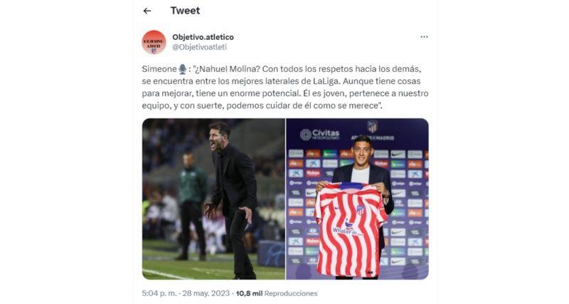 Sin embargo, Diego Simeone quiere contar con Nahuel Molina y lo llenó de elogios ante la prensa: “Con todos los respetos hacia los demás, se encuentra entre los mejores laterales de La Liga. Aunque tiene cosas para mejorar, tiene un enorme potencial. Él es joven, pertenece a nuestro equipo, y con suerte, podemos cuidar de él como se merece”, dijo tras el triunfo a Real Sociedad.